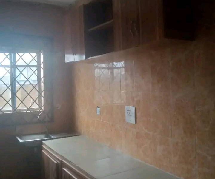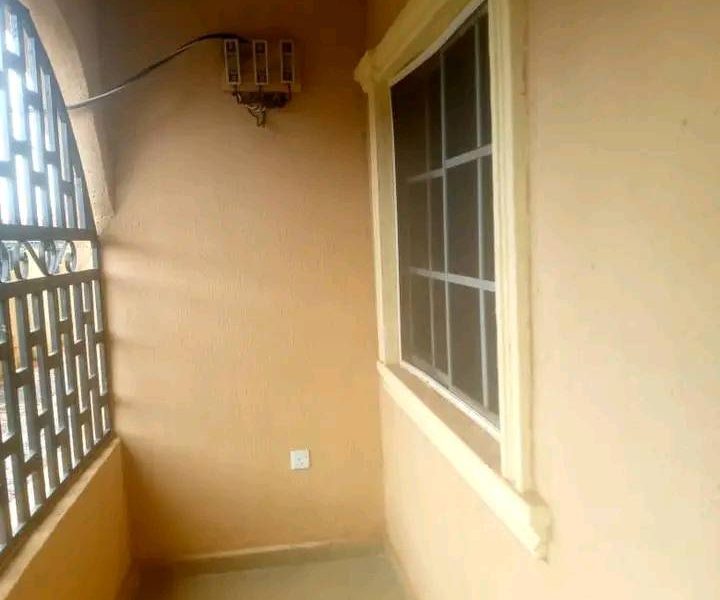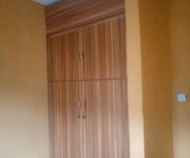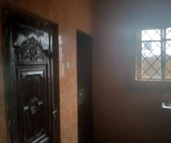 Standard 3bedroom flat available for rent with kitchen cabinet and wardrobe in a fenced interlock compound.