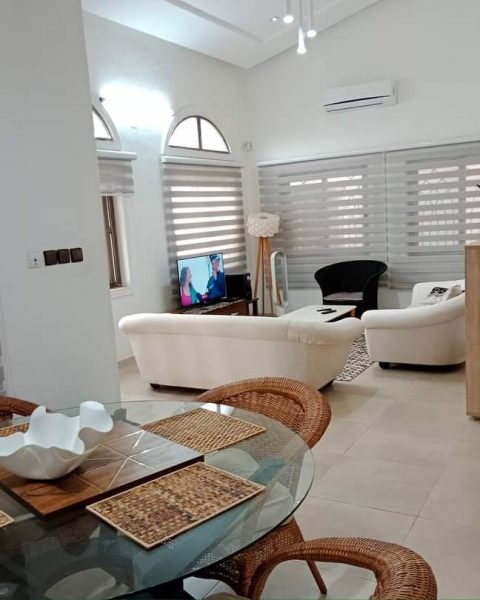 Il est mis en location une villa meublée de 3 chambres et salon sanitaires entièrement climatisés avec piscine construite sur une parcelle déjà lotie et recasée d’une superficie de 300M² située non loin du goudron et à quelques 200M de la nouvelle double voie goudronnée Kérékou à Zopah, Calavi avec :
