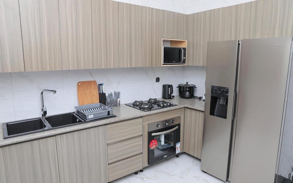 Il est mis en location un appartement meublé de 2 chambres salon moderne à Fidjrossè plage au Carrefour Club des Rois, dans un immeuble sécurisé, au bord de la route des pêches avec :