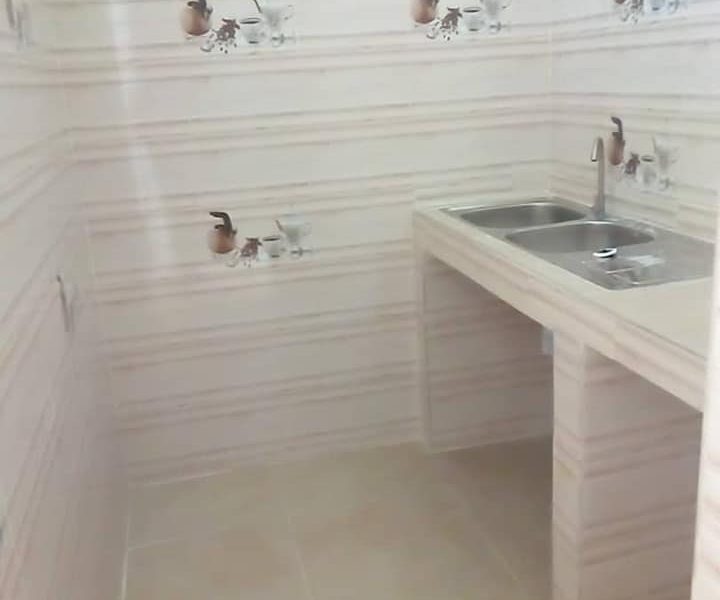 Nouvelle construction chambre salon sanitaire sttafés carreaux miroir douche et cuisine séparées avec arrière-cour au rez-de-chaussée et au premier étage à Godomey Togoudo à 150m du carrefour T